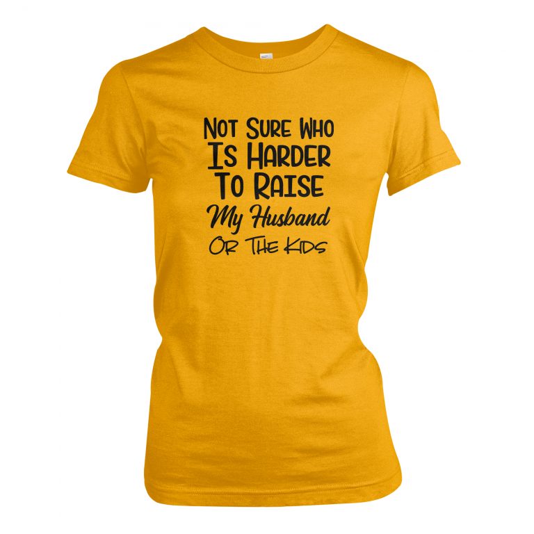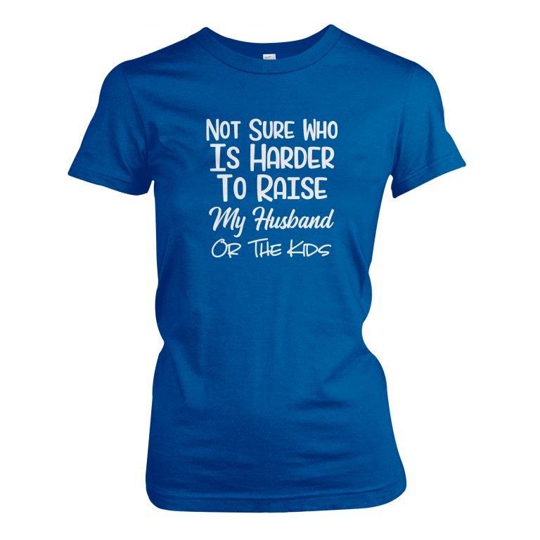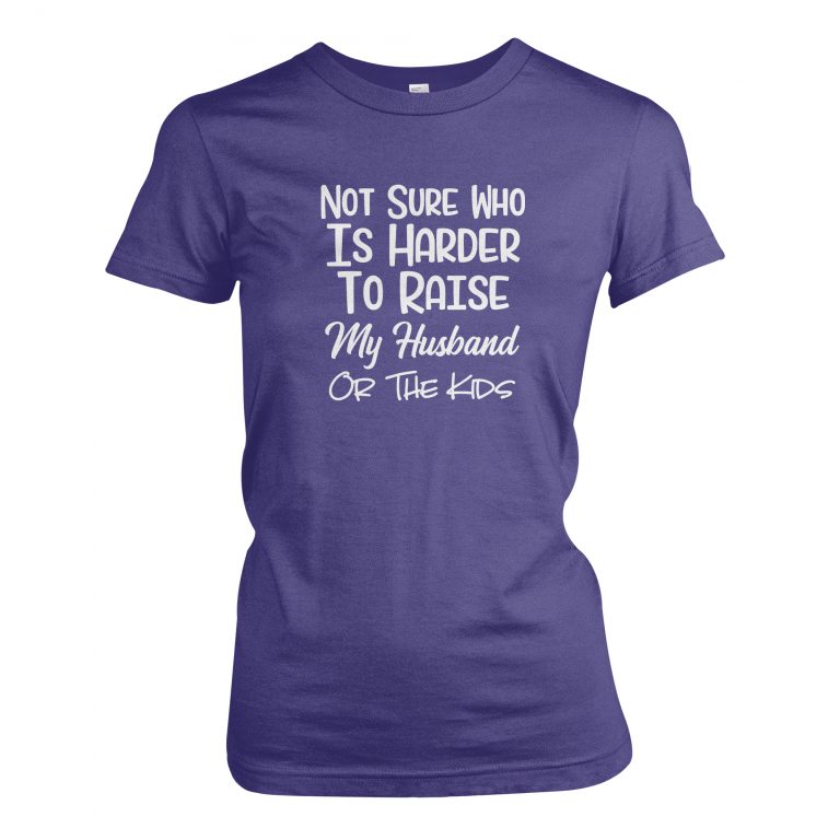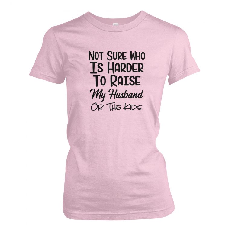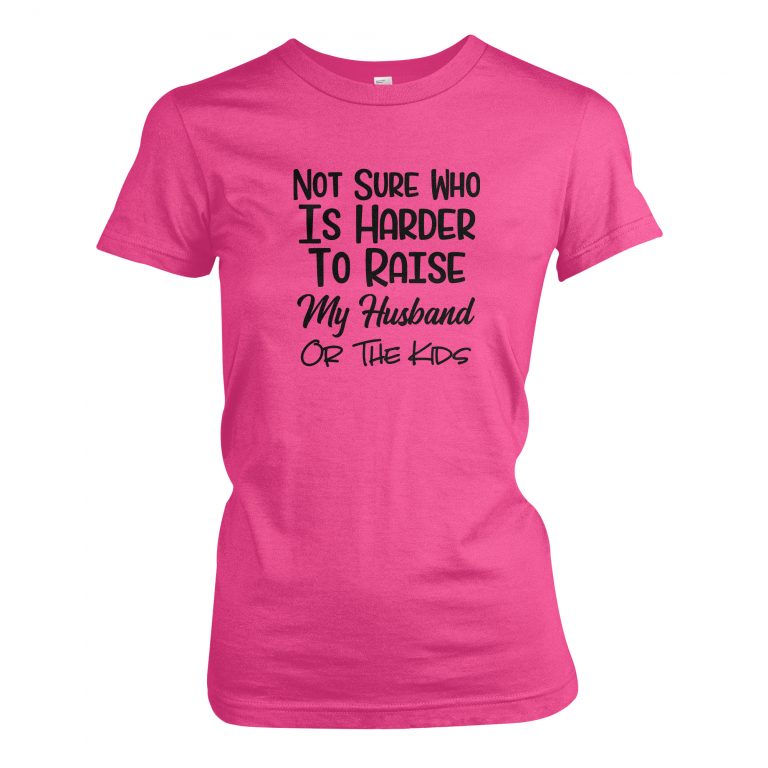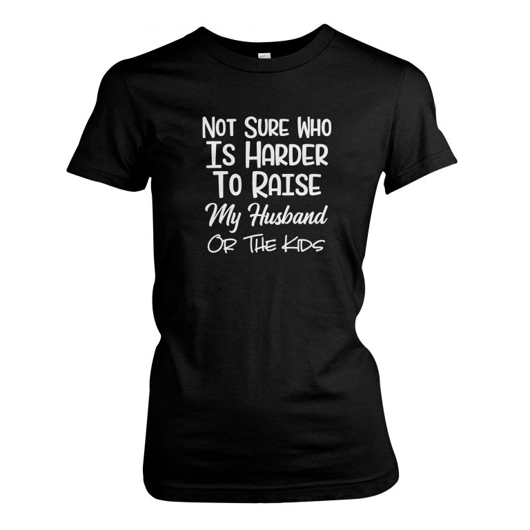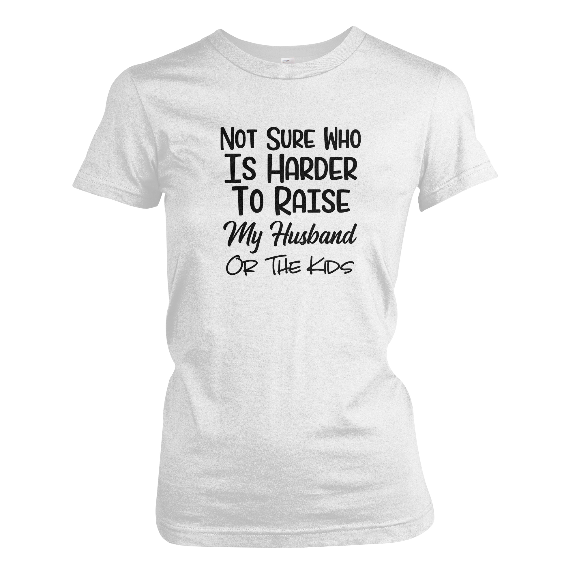 Not Sure Who Is Harder To Raise My Husband Or The Kids Funny Ladies Momma Mom Tee Shirt
